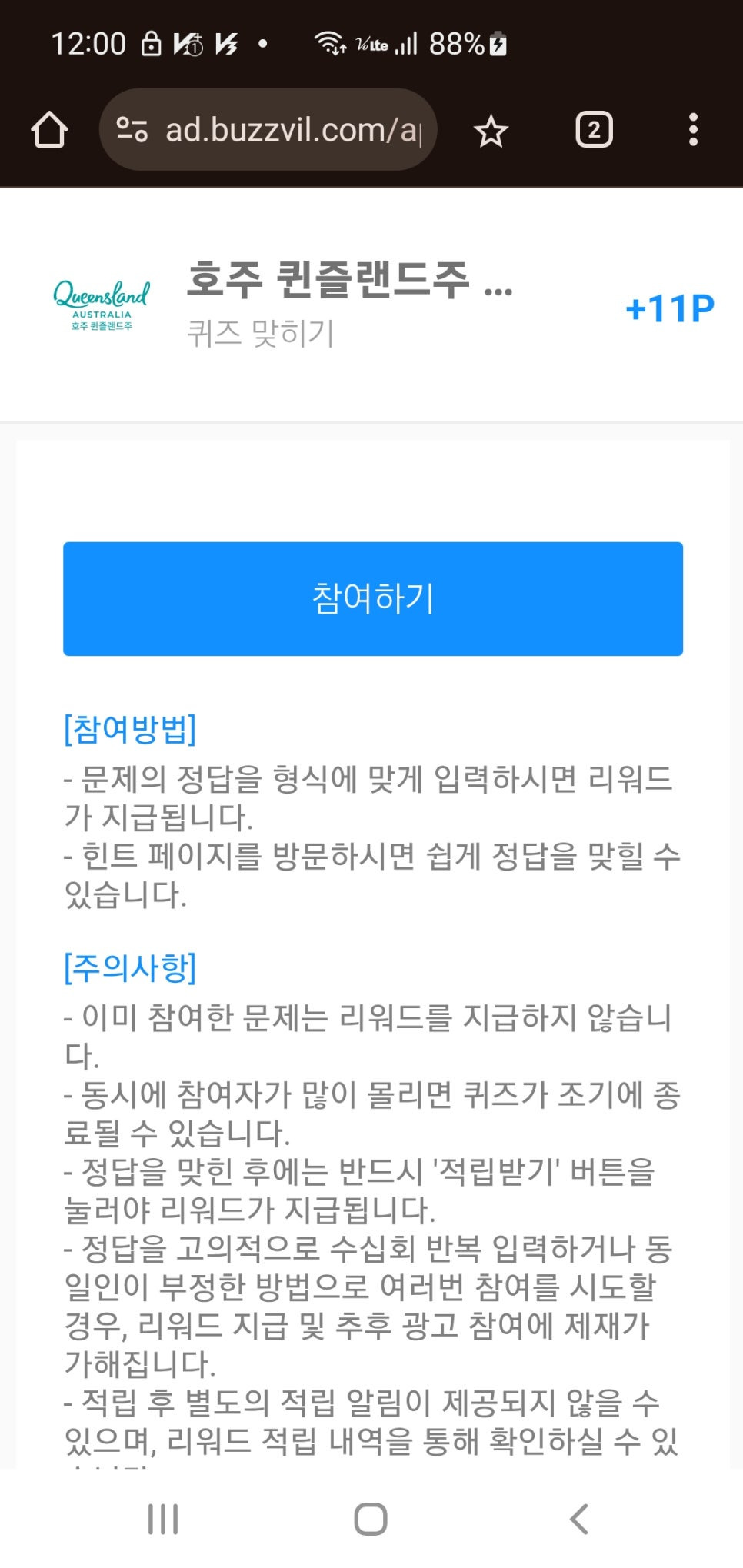 - 정답을 고의적으로 수십회 반복 입력하거나 동일인이 부정한 방법으로 여러번 참여를 시도할 경우, 리워드 지급 및 추후 광고 참여에 제재가 가해집니다.